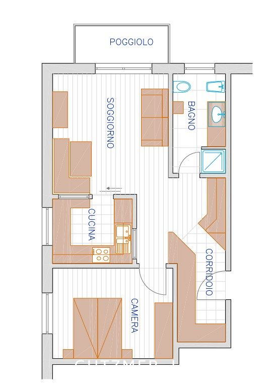 Completo di tutti comfort, una superficie di circa 65 mq, perfetto per una o due persone.
